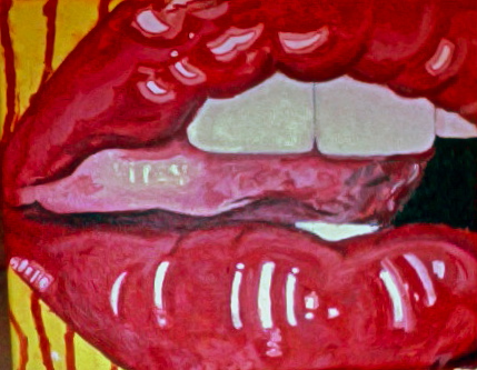 | "Lips," 36x20, acrylic, marker and spray paint on canvas. 2007 |